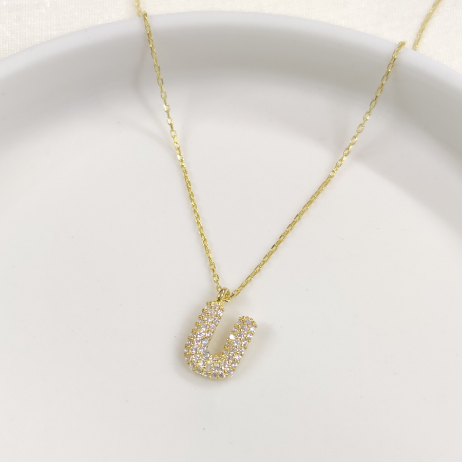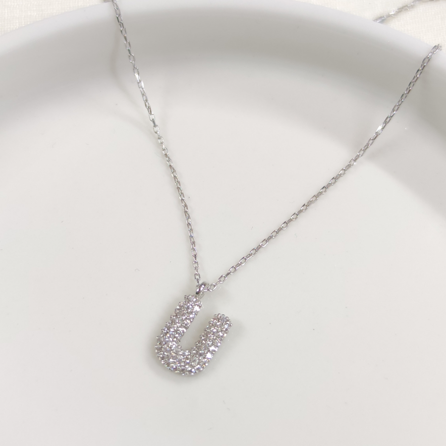 U TAŞLI GÜMÜŞ HARF KOLYE