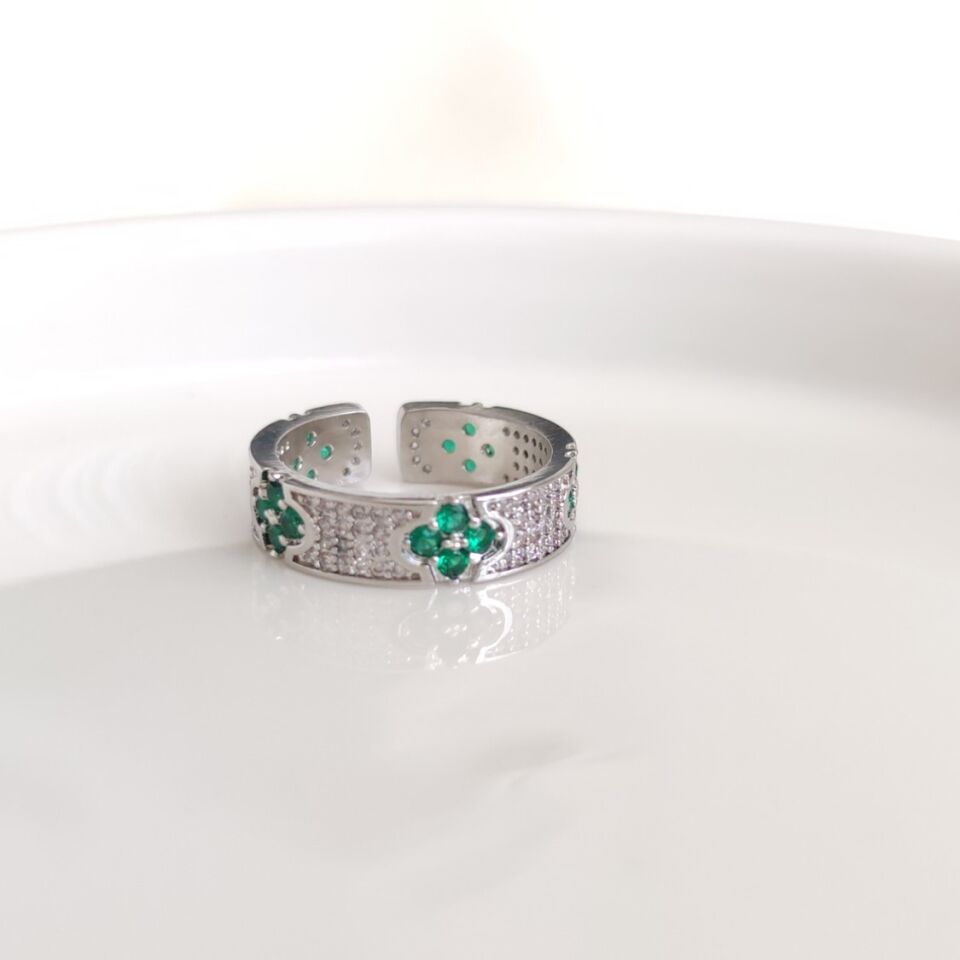 XUPING 14 NUMARAYA KADAR AYARLANABİLİR YEŞİL ÇİÇEK DETAYLI YÜZÜK
