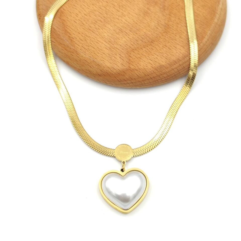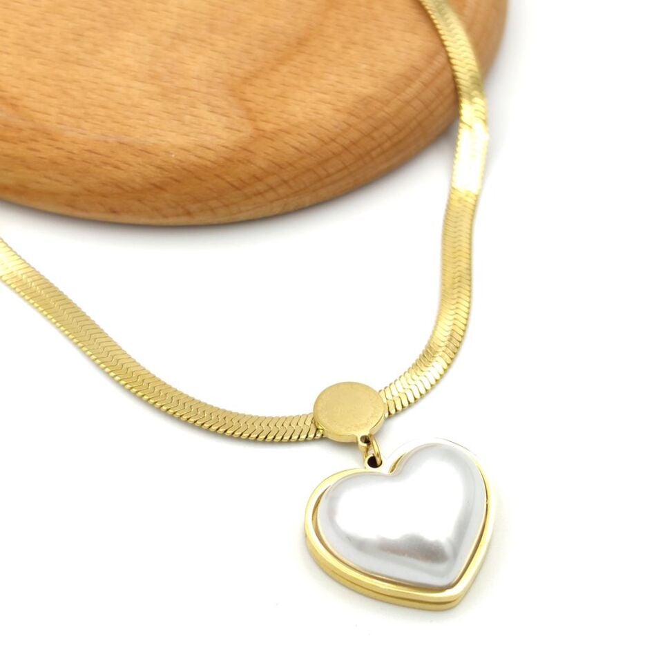 YASSI ZİNCİRLİ BÜYÜK KALP ÇELİK KOLYE
