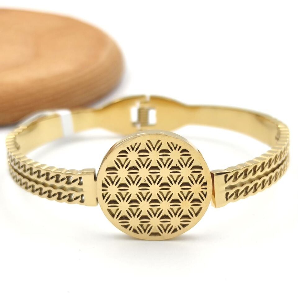 ZİNCİR DESEN YAŞAM ÇİÇEĞİ ÇELİK KELEPÇE BİLEZİK